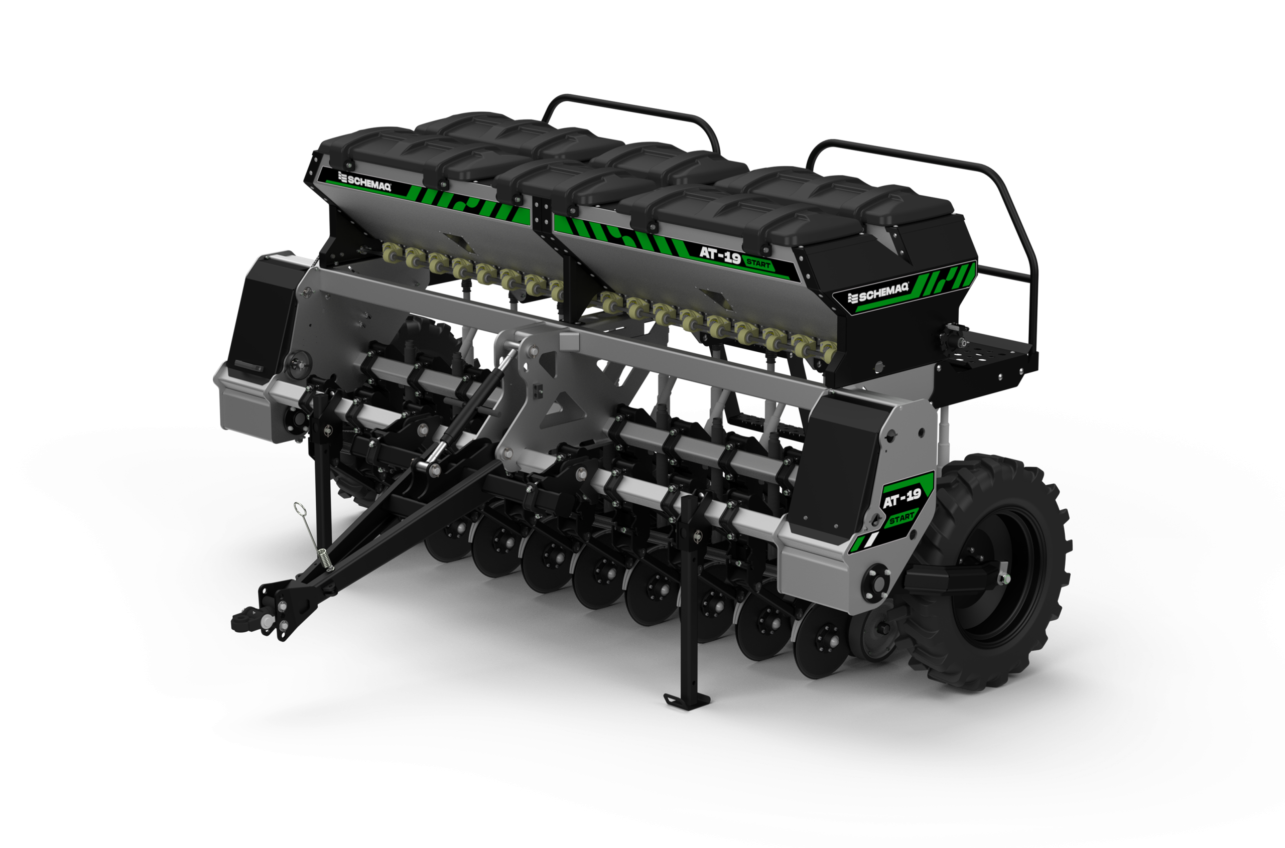 A Semeadeira Adubadeira Schemaq modelo AT Start é ideal para pequenas e médias propriedades. Com espaçamento entre linhas de 18 cm, é perfeita para cultivos de inverno, como trigo, aveia, mix, nabos, entre outros. Seu design aliado ao método de produção moderno garantem ao produtor um funcionamento pleno, a partir da utilização de componentes de qualidade.
