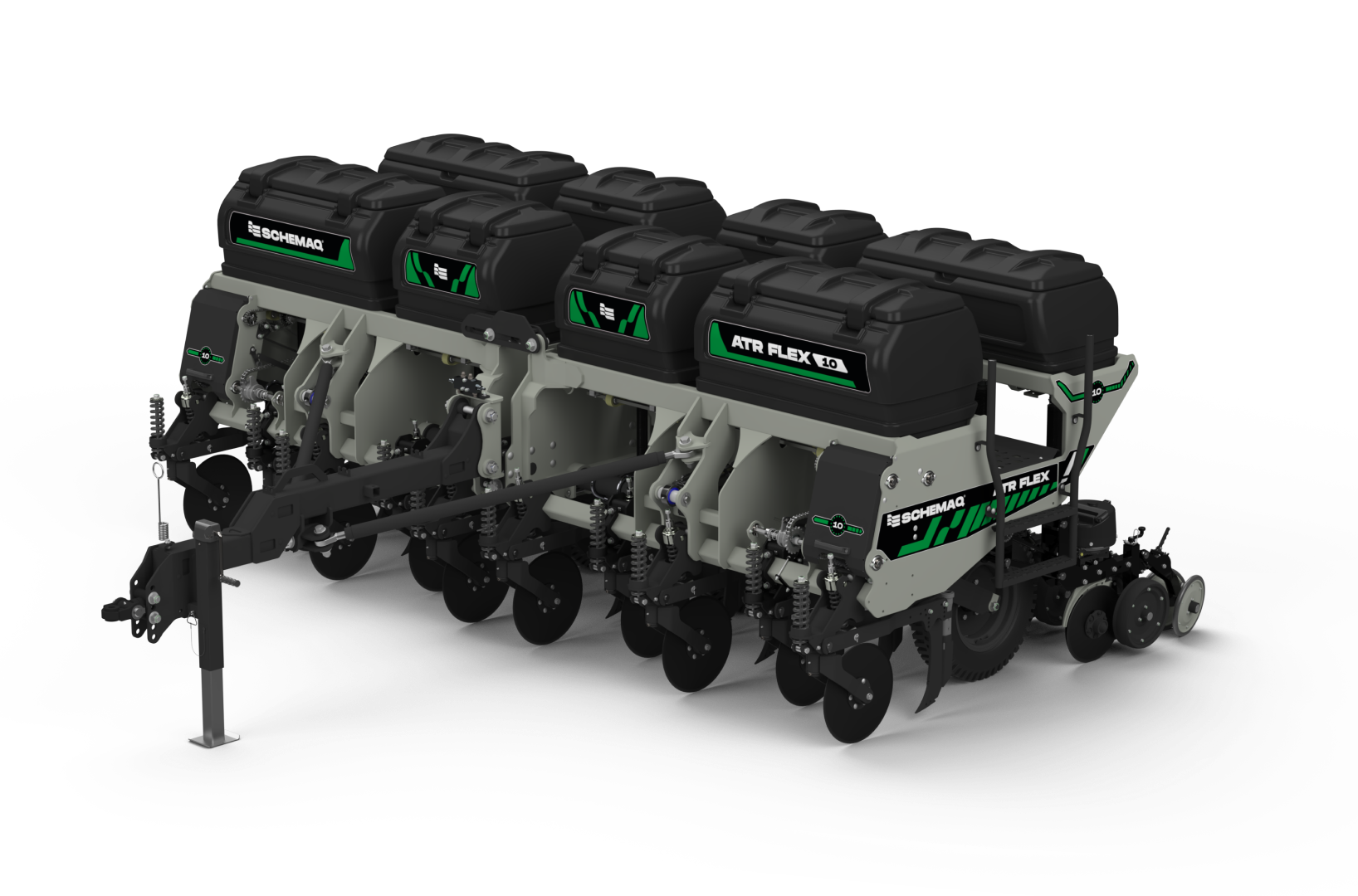 A Plantadeira Adubadeira Schemaq modelo ATR Flex é ideal para médios agricultores. Com espaçamentos entre linhas de 45 a 50 cm, é perfeita para cultivos de verão, como soja, milho, entre outros. Seu design aliado ao método de produção moderno garantem ao produtor um funcionamento pleno, a partir da utilização de componentes de qualidade dos principais fornecedores do mercado.