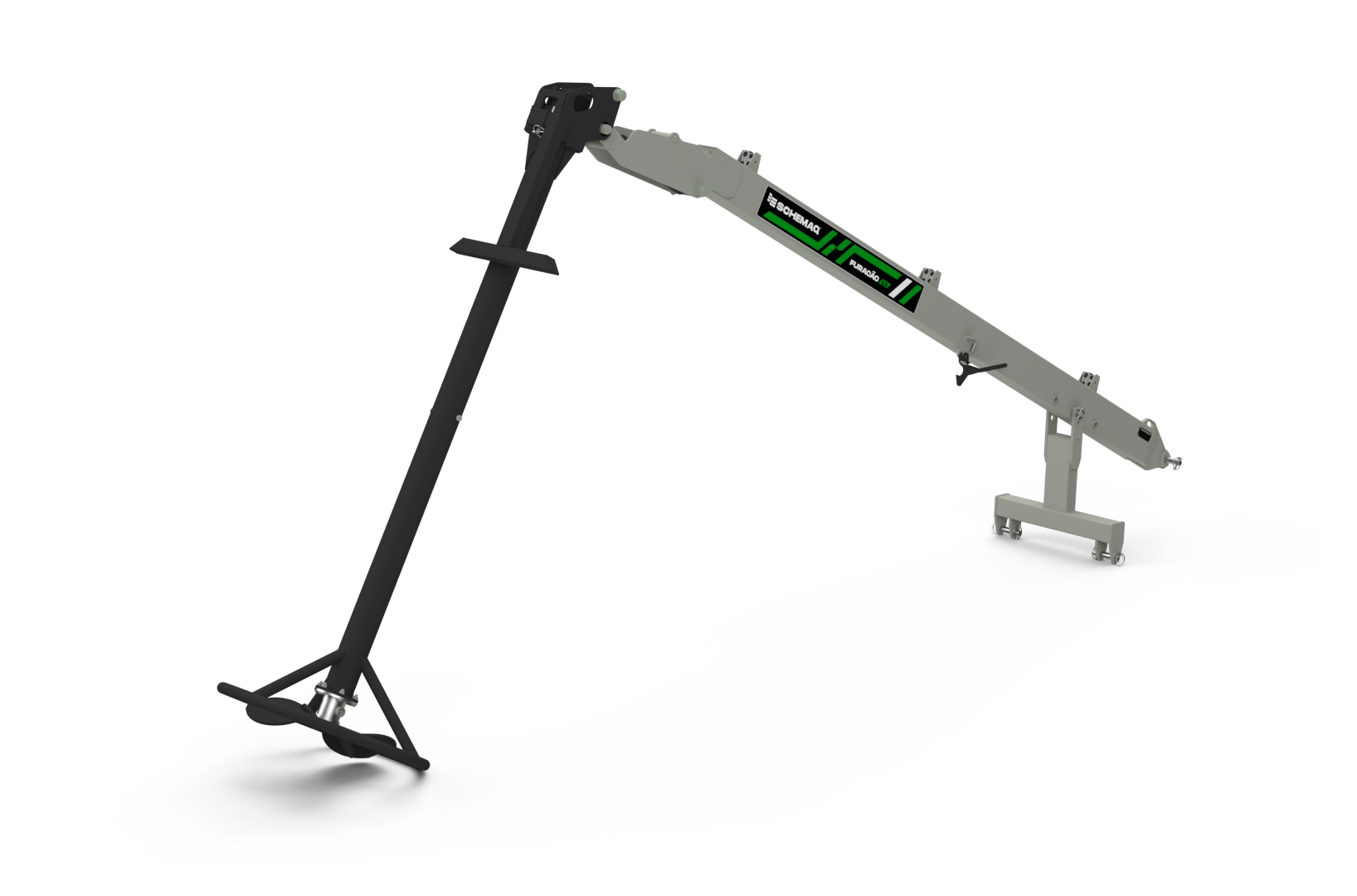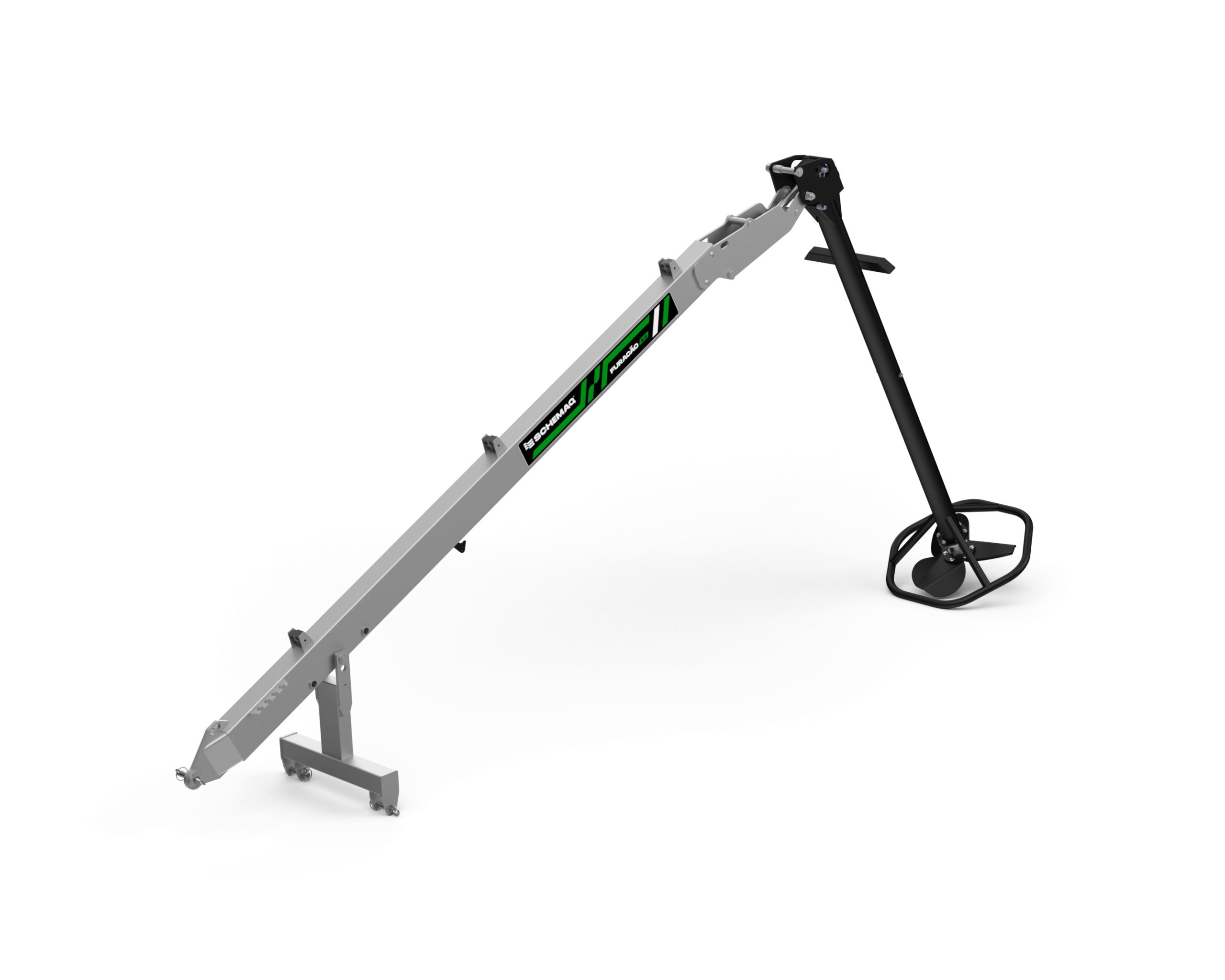 A articulação acionada por cilindro hidráulico oferece praticidade no ajuste do ângulo de trabalho, permitindo que a hélice atinja maiores profundidades conforme a necessidade da operação.